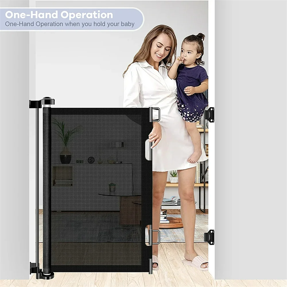 71in Wide Retractable Baby Gate, 34in Tall, No-Drill- 34in Tall