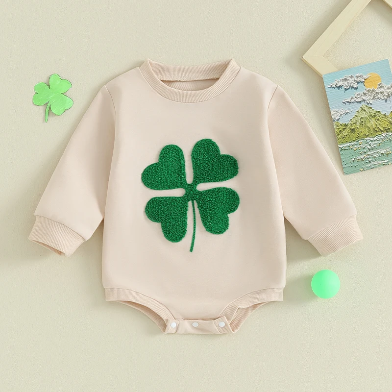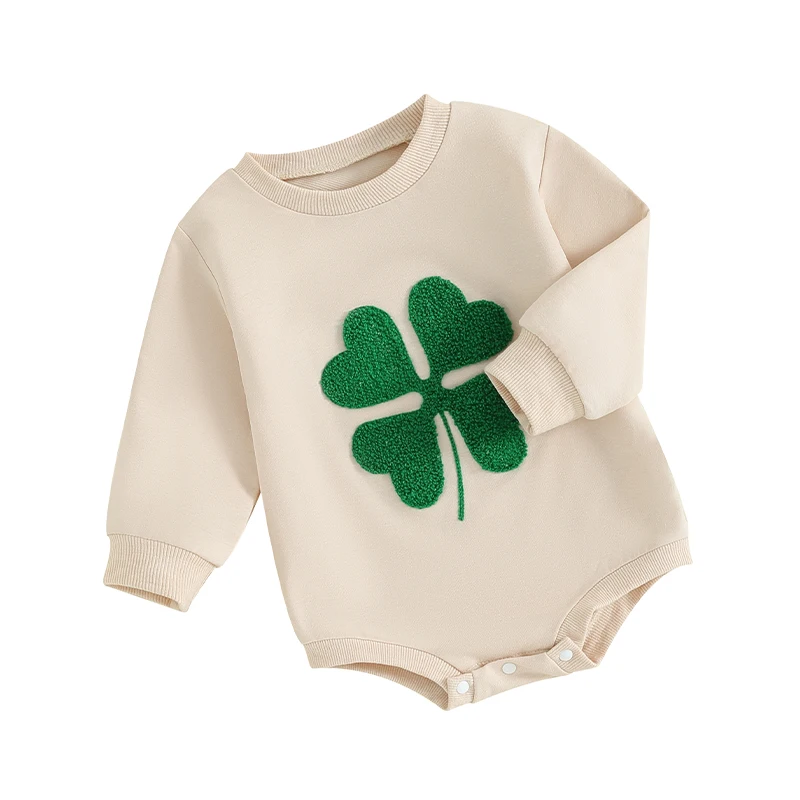 Baby Romper, Long Sleeve Crew Neck Shamrock Fall Bodysuit Clothes for Girls Boys