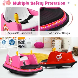 3. 【Multiple Safety Protection】The kids bumper car has passed ASTM and CPSIA certifications for higher safety. Adjustable safety belt helps to firmly fix toddler into the seat. Soft bumper design ensures safe collision. In addition, slow start function avoids sudden acceleration.