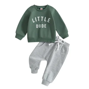 Toddler Boys Fall Outfits Letter Print Crew Neck Long Sleeve Sweatshirts and Long Pants 2Pcs Clothes Set